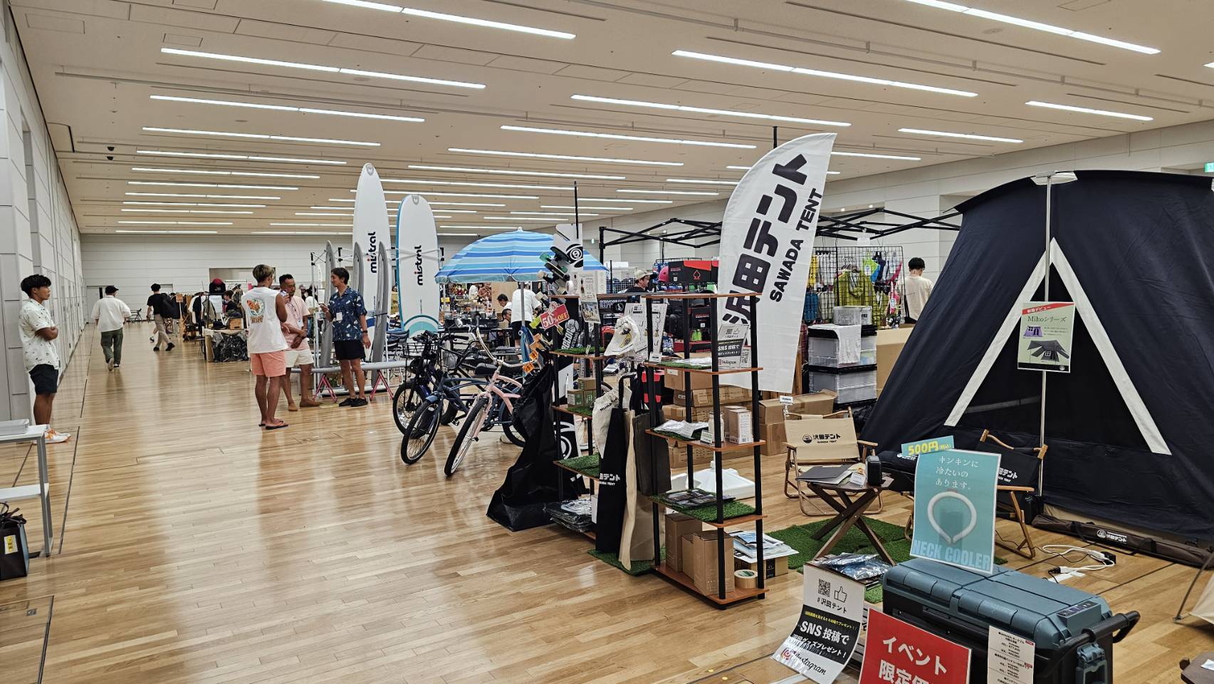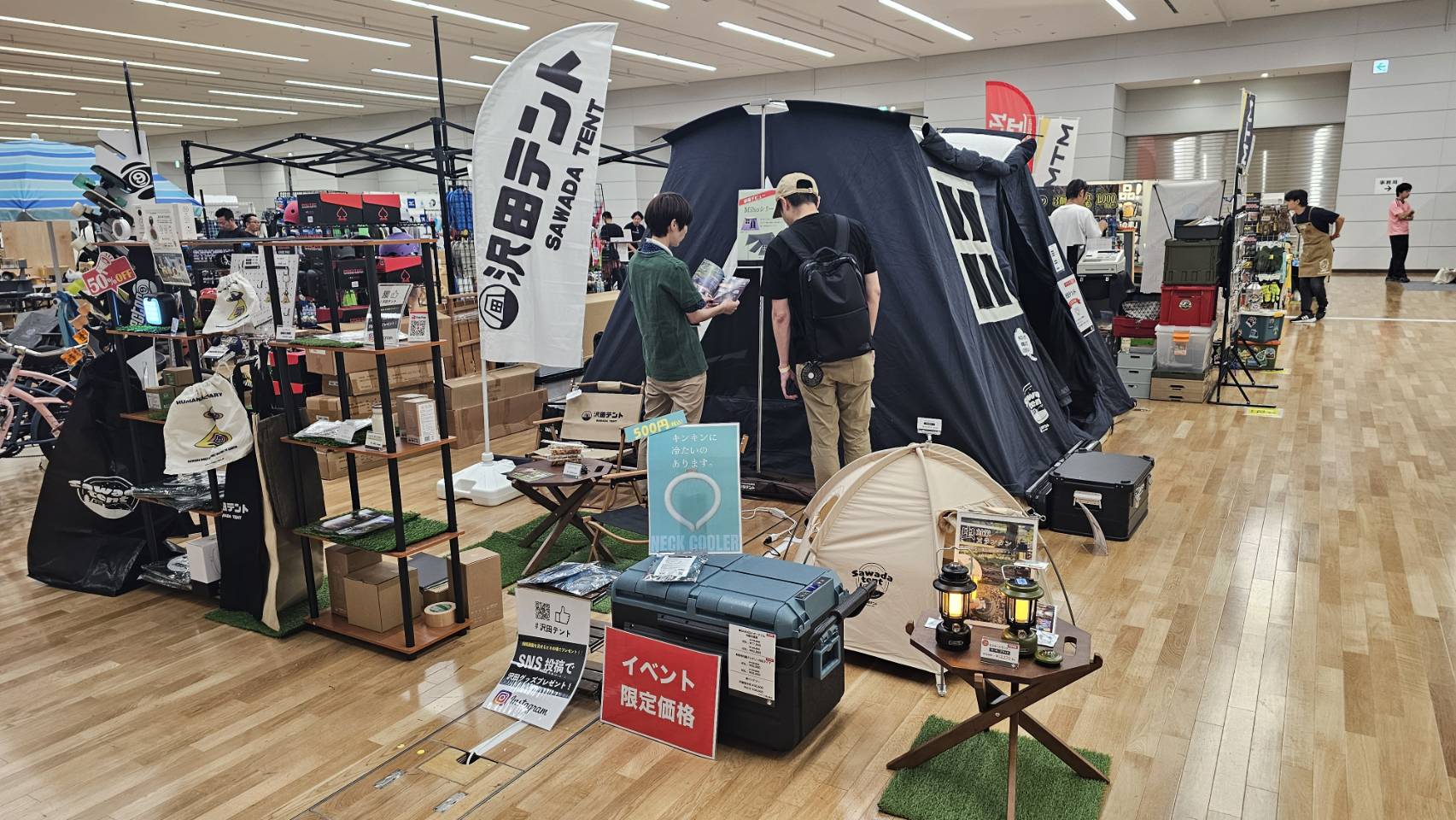 今回のイベントはアウトドア・キャンプに限らず、ボードスポーツやファッションアイテム、リビング雑貨など幅広いジャンルの出展があり、これまでとは違った層に沢田テントをPRするよい機会になったと感じます。