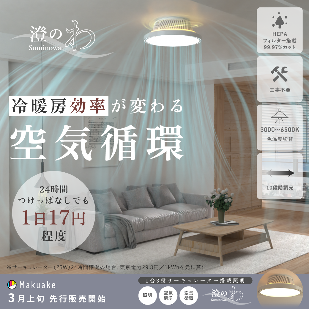 【TOMONARIから新発売】空気清浄機能付シーリングファンライト 澄のわ-Sumino...